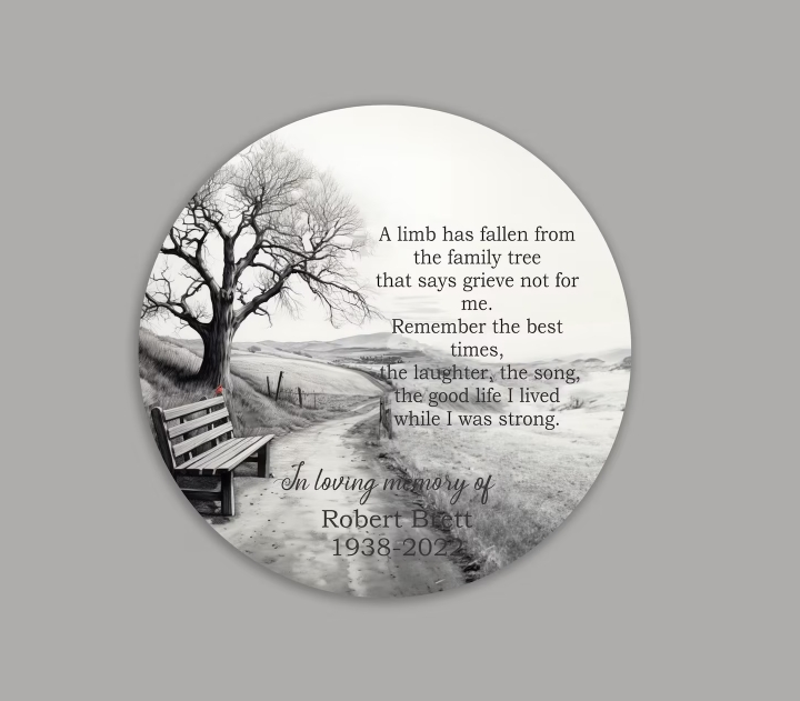 Small wooden coins, printed with their name, their dates, and a design that suited who they were — a lighthouse, an eagle, a sailboat, a tree. Twenty to hand out at the service. The kind of thing people slip into a pocket and find again months later, and remember the loved one.